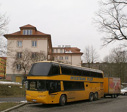 Sice máme k uveřejnění i jinou soupravu, ale protože je třeba prý trošku vyvážit Setrovou smršť a v soupravě, kterou jsme dostali od spolupracovníka BUSportálu je jako z udělání zase Setra, uvítali jsme cestou domů zaparkovanou soupravu staršího typu autokaru Neoplan Skyliner Royal Class plzeňské CK Intertrans a vozíku dle nálepky vyrobeném společností Autovia.