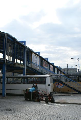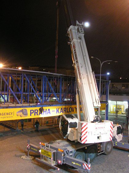 část lávky směrem k objektu nové haly. Záběry z demontáže.