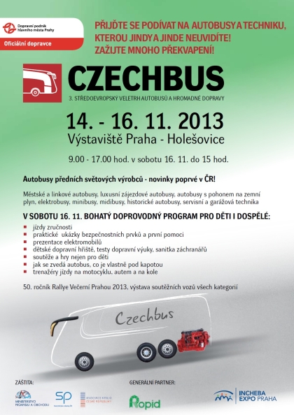 Oslavy dvacetiletého jubilea zahájí na výstavě letošní generální partner Czechbusu ROPID. Představí nejen svoji vlastní činnost v expozici, ale také na seminářích a prezentacích, navíc však pozval a bude prezentovat své partnery. Na volné ploše před Průmyslovým palácem budou smluvní dopravci ROPID prezentovat své nové autobusy. ČSAD Střední Čechy předvede jeden z typů značky SOLARIS a jeden z pěti zcela nových vozů Iveco Bus Crossway LE, které se v červenomodrobílém designu PID objevily nedávno na příměstských linkách, představí společnost ARRIVA Praha.