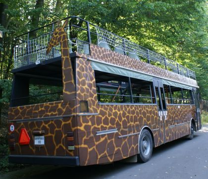 Dvě dvou a dvě třídvéřové vyhlídkové nástavby na sedmičkových Karosách vozí návštěvníky v části SAFARI. Tři z nich jsme zachytili na fotografiích. Řidiči autobusu musí umět jezdit pomalu a používat "pneumatické" ovládání vrat, která oddělují SAFARI od klasické části zahrady i části v SAFARI mezi sebou. Řidič navíc plní i funkci průvodce - přes mikrofon je ozvučen celý autobus. BUSportál děkuje za laskavé přijetí Janě Myslivečkové z oddělení marketinku a za příjemné svezení a zasvěcený výklad řidiči Zdeňkovi Peterovi.