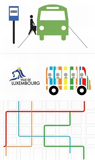 Ve schématu 'multiplicity' je barevně autobus symbolizován zelenou, jízdní kolo modrou, pěší oranžovou a automobil červenou barvou. Zdroj: www.vdl.lu