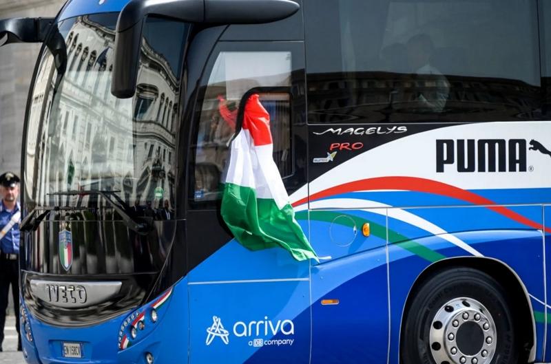 Po vítězství nad Anglií ve Wembley se italská fotbalová reprezentace vrátila na palubě autokaru Magelys, oficiálního autobusu, který doprovázel Azzurri od začátku turnaje.