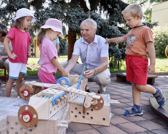 31. srpna ve vysokomýtské MŠ Slunečná, s dětmi generální ředitel Jiří Vaněk. Foto IVECO CR