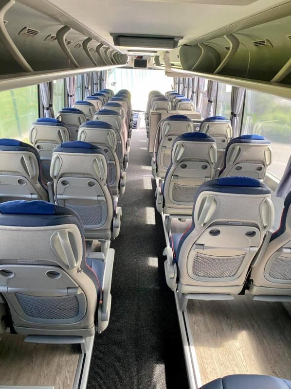 Prestižní autokar v červenomodrých barvách je přizpůsobený pohodlí hráčů italského fotbalového klubu. Zajišťuje jim maximální bezpečnosti, komfort a kvalitu.