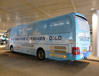 (pan) Dokonale polepené vozidlo je využíváno k přepravě cestujících k nalodění na linky DFDS Seaways, zde konkrétně se jedná o linku Kodaň - Oslo. Autokar MAN Lion's Coach byl vyfotografován na hlavním autobusovém nádraží ve švédském Helsingborgu, kam pravidelně zajížděl nebo zde i "odpočíval" viz. propagace vodní cesty na zadním okně nahoře.