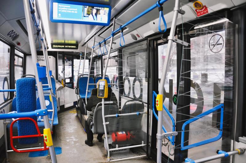 Kapacita nízkopodlažního vozidla s klimatizací, USB konektory a Wi-Fi, je 85 cestujících, z toho 30 sedících. Foto Mosgortrans