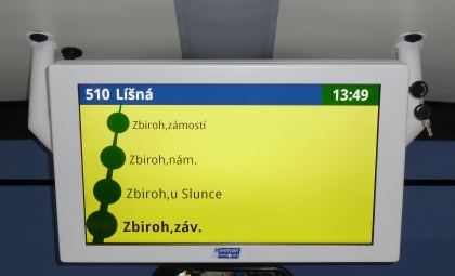 Vnitřní jednostranný LCD panel pro cestující VCS 185A v režimu dle standardů IDP. Foto Herman