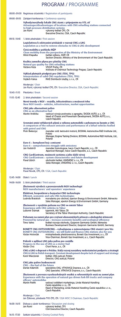Český plynárenský svaz pořádá sedmý ročník mezinárodní konference PERSPEKTIVY ROZVOJE A VYUŽITÍ CNG/LNG V DOPRAVĚ. Konference tentokrát jako jednodenní proběhne jako minulé ročníky v Kongresovém centru U Hájků, Na Florenci 29 v Praze.