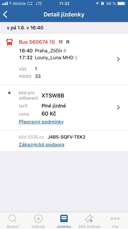 Jízdenka z mobilní aplikace Jízdní řády IDOS