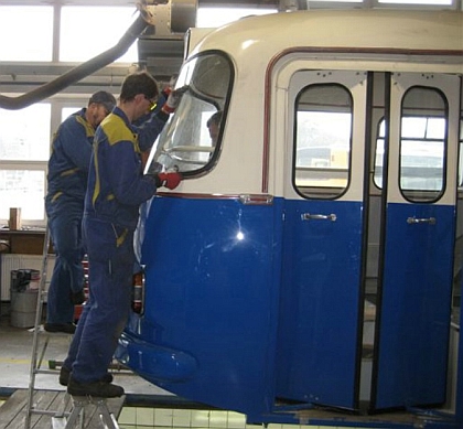 Pracovníci údržby vozidel dokončili rekonstrukci autobusu po tříletém úsilí právě v těchto dnech.