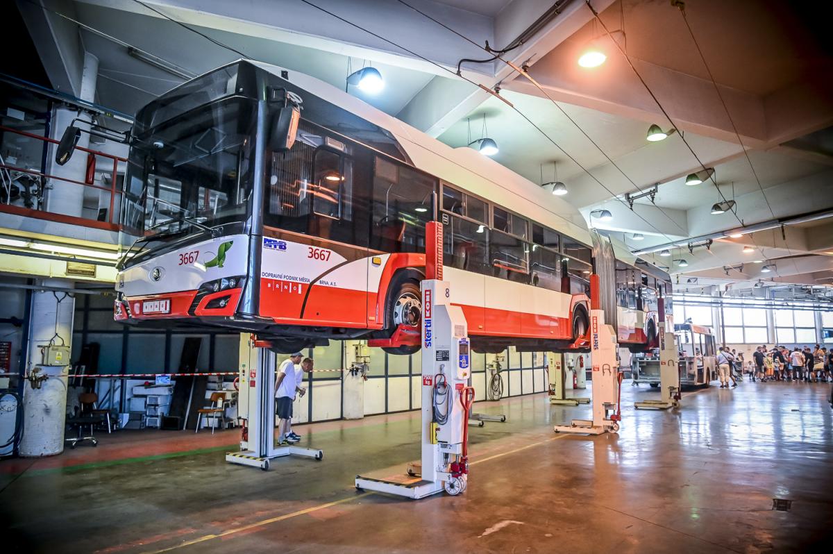 Nejmladší vozovnu Dopravního podniku města Brna navštívilo 18. června přes pět tisíc lidí. Přišly hlavně rodiny s dětmi i fanoušci MHD. Foto DPMB