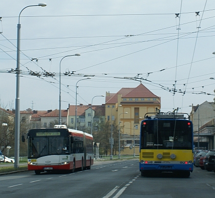 Patrně jako milá pozornost za péči, kterou věnujeme trolejbusům ze Škoda Electric, objevil se při odjezdu jeden z nových testovaných vozů. Trolejbus Škoda 26 Tr Solaris pro bulharský Pleven v režimu s dieselagregátem bylo však velmi náročné za provozu a s překážkami kladenými světelnou signalizací dostihnout. Věříme, že snímky, které jako obvykle poskytneme zahraničním kolegům, uděláme radost jak v Bulharsku, tak i jinde v Evropě a zpětně třeba alespoň ve Škoda Electric a PMDP, jehož "piloti" trolejbusy zajíždějí. Potvrzuje se, že v letošním rekordním roce, kdy Škoda Electric vyrobí asi 360 trolejbusů, nebude přítomnost testovacích trolejbusů ve městě žádnou vzácností.