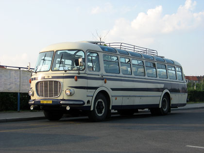 autokarem Škoda 706 RTO LUX s majitelem Janem Kuklou za volantem.