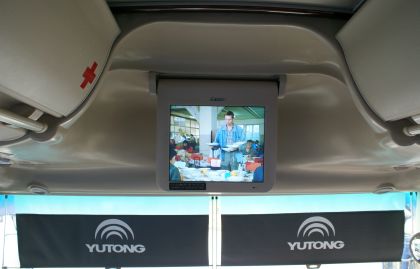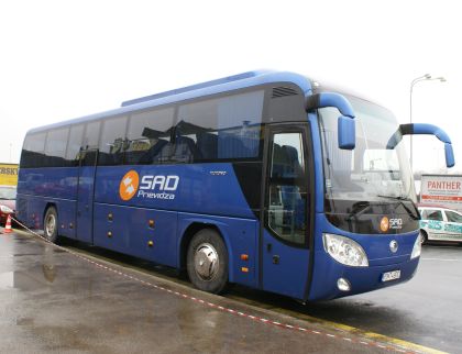S autobusem Yutong jsme se opět po dvou letech svezli, tentokrát po hradecké dálnici s vloženým průjezdem kruhovým objezdem, který ověřil dobrou manévrovatelnost dvanáctimetrového vozidla. Pravdou je, že jsem již zhýčkaná automatickými či mechanickými převodovkami s řadícími automaty. Na šestistupňovou manuální převodovku je však třeba si pouze zvyknout, řazení je velmi snadné a je jen věcí rutiny. Řidič má dobrý rozhled předním sklem i zpětnými zrcátky. Při zařazení zpátečky se aktivuje obrazovka se záběry kamery. Otevírání dveří je vázané na parkovací brzdu a po rozjetí se dveře zavřou. Je třeba si uvědomit, že se blinkry nevrací automaticky. Autobus má tempomat a samozřejmě i omezovač. Retardér může reagovat volitelně - odděleně i v horní poloze brzdy. Autokar do Prahy přivezl jeho řidič Jozef Buša. Ten si na vůz velice rychle zvykl a chválí kromě jízdních vlastností vozidla s motorem 400 HP i topení, účinné i při velmi nízkých teplotách (radiátory jsou i pod předposlední řadou sedadel) a klimatizaci. Dojem z autobusu je standardní a pokud bude jeho cena zajímavá, životnost odpovídající a zajištěný kvalitní servis, pravděpodobně si svoji klientelu najde. Je vhodné, aby si zájemce vozidlo, které zde na trhu zatím nebylo, důkladně vyzkoušel. Do budoucna by se měl představit ještě kratší, 10.5 metrový autokar ZK6107HF a jistě velmi zajímavý 10.5 metrový nízkopodlažní autobus ZK6126HGA s celohliníkovou karosérií.
