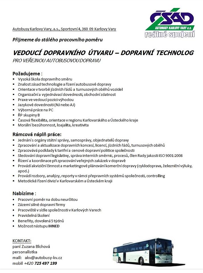 Autobusy Karlovy Vary přijmou stálého pracovního poměru pracovníka na pozici