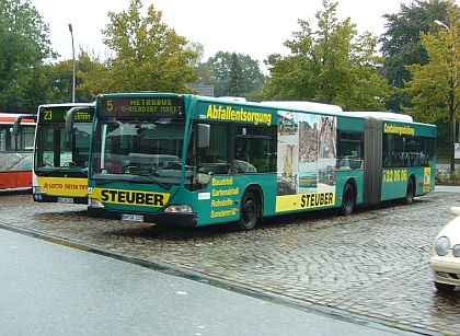 Mezi autobusy jsme kromě zmíněných XXL Van Hool identifikovali např. autobusy MAN, Mercedes-Benz a Solaris. Odhadujeme, že některé městské autobusy jsou Graf & Stift / Steyer, pokud tomu tak není, rádi opravíme. Autobus Irisbus patrně slouží linkové dopravě stejně jako autobusové nádraží na následujícím záběru. Přehlídku uzavírá "Buszug" - oblíbená silniční souprava předstírající vlak.