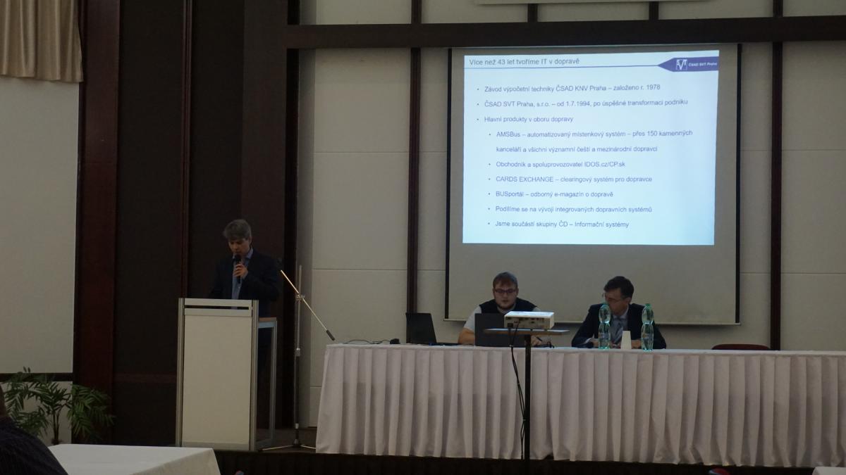 První vystoupení zástupce organizátorů IDS měl Jiří Horský, ředitel společnosti KORDIS JMK, zaměřené na Integrovaný dopravní systém Jihomoravského kraje. Věnoval se elektronickému odbavování cestujících, dopravnímu zúčtovacímu centru, odbavovacímu zařízení pro autobusy, nasazování nových vozidel v železniční i veřejné linkové dopravě a stavbám na železnici v kraji.