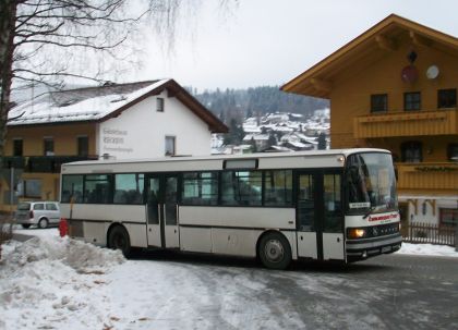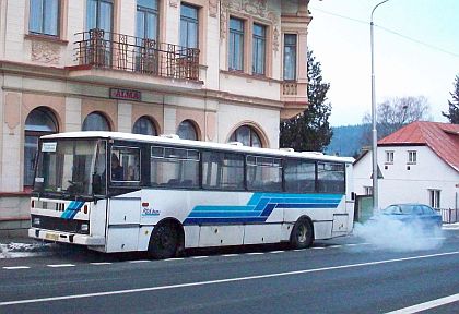 Tenhle autobus zajišťoval provoz místního skibusu. Měl drobnou závadu - vůbec netopil. Podle slov řidiče šlo ale jen o záložní autobus, protože ten, který tu měl jezdit, neprošel STK, našla se na něm nějaká vážná závada a teď se řeší, takže sem firma převedla tuhle Karosu (r.v. 90), kterou jsem ještě měsíc předtím viděl na lince Domažlice - Babylon - Spálenec.
