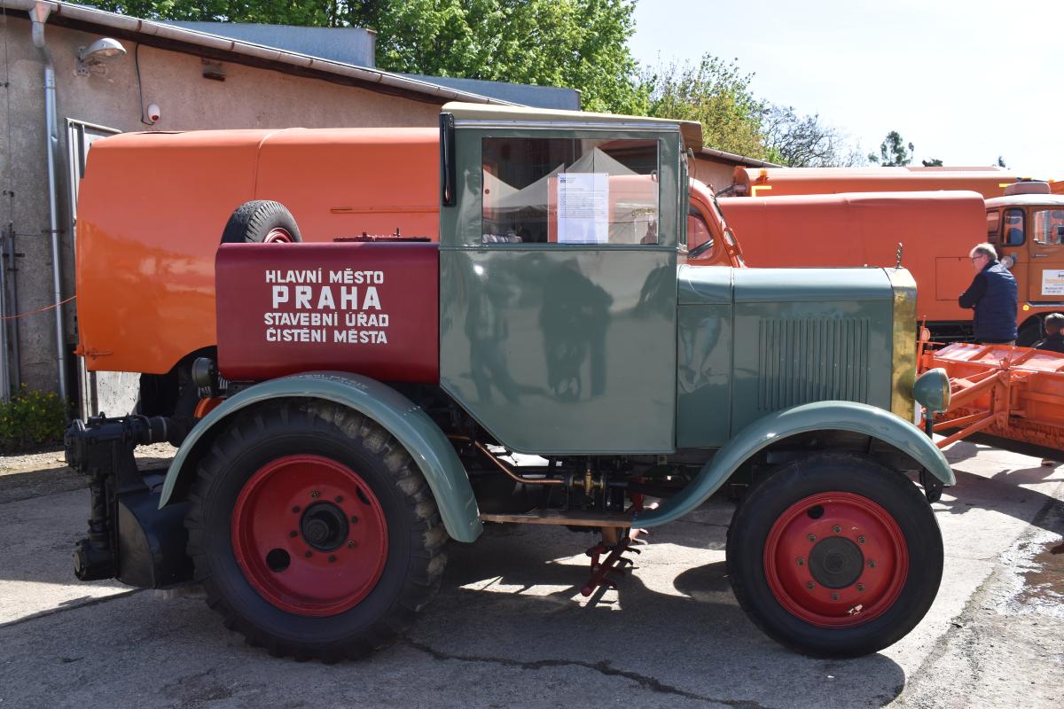 Stejná značka, stejný účel využití, ovšem rozdíl několika let ve výrobě. Dva zametací vozy zn. Praga byly vystavené spolu s dalšími exponáty.
