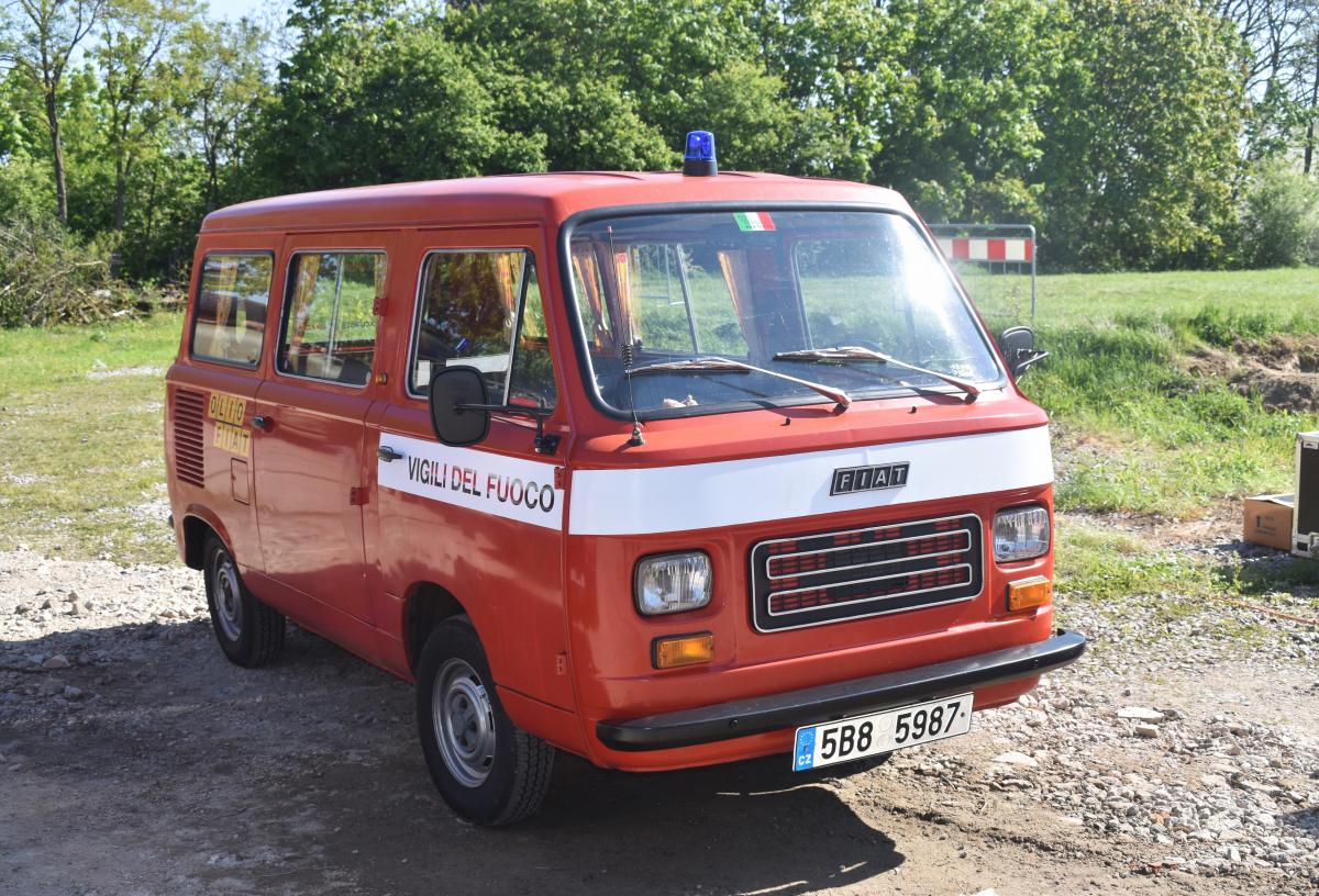Expozice hasičských automobilů byla opravdu různorodá, což dokládá vůz Fiat. Text ,,Vigili del fuoco" znamená v italštině hasiči.