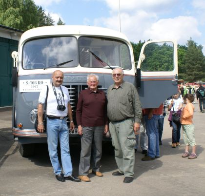 Lešany 2009: Předseda slovenského RTO klubu a kreslíř Jaro Matúšek, vysokomýtská konstruktérská legenda Ladislav Kocián a Alois Koutek z ČSAP Nymburk.
