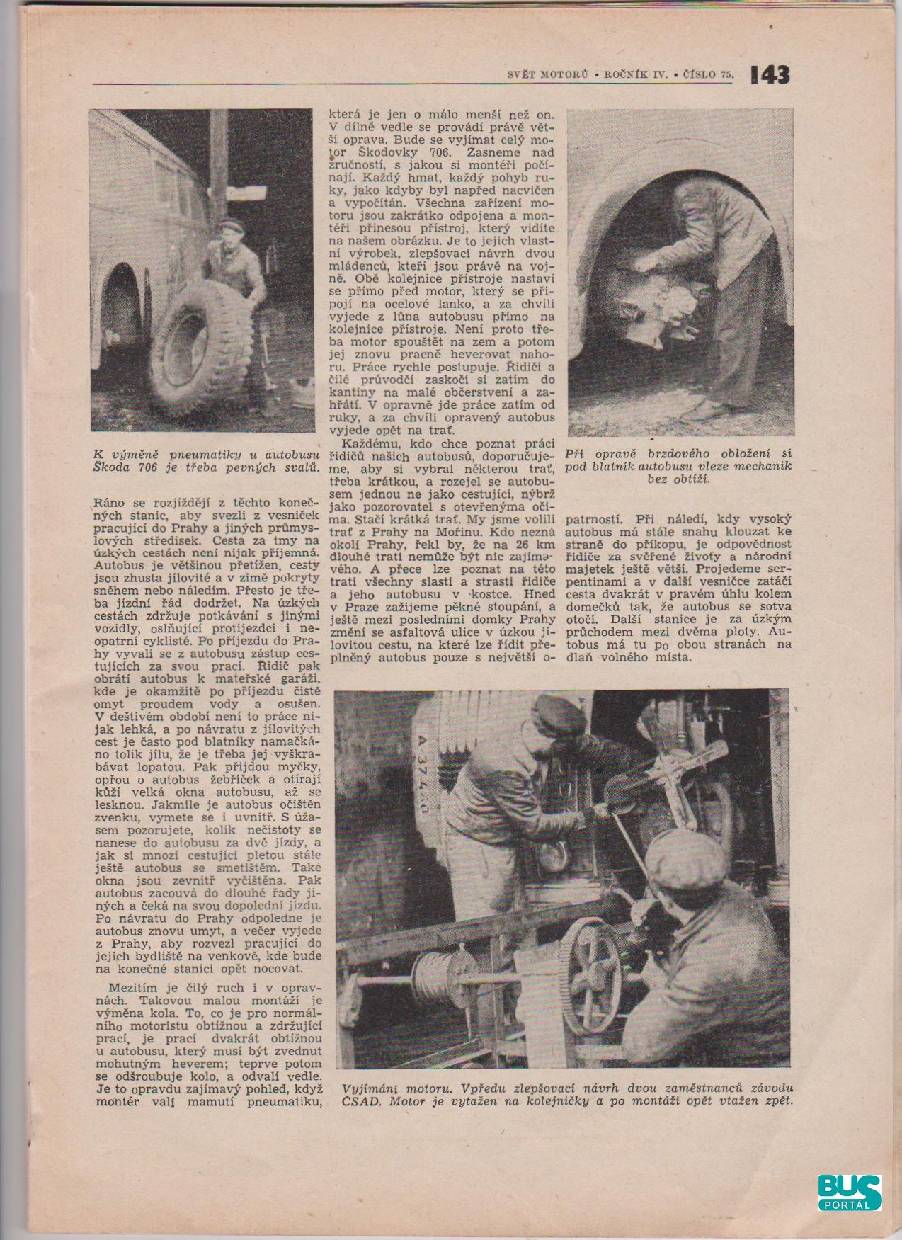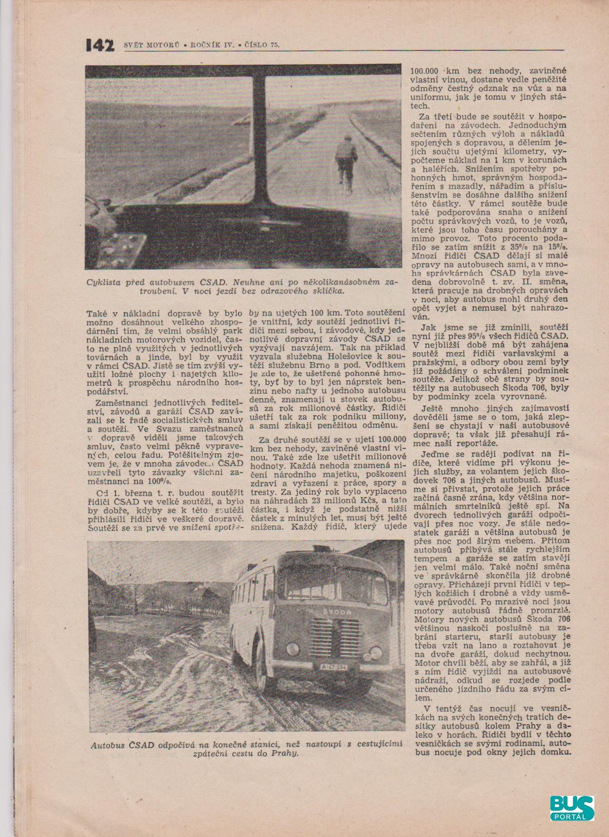 Svět motorů 1950: Na betonkách i okreskách, za slunce i mrazu, jezdí autobusy ČSAD, aby dopravily pracující do měst a po práci zpět na venkov. Autobusy ŠKODA 706 RO.